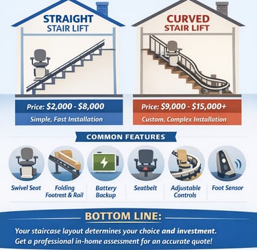 Now, let’s talk about stair lift prices. The prices for stair lifts can depend on a few things, like: